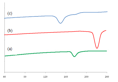 Fig. 5: Thermogram of glibenclamide (a), Saccharin (b), and Cocrystal (c)