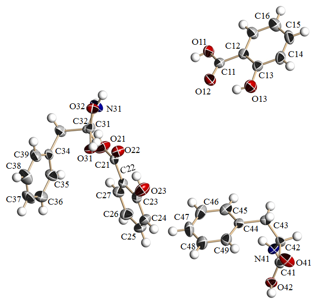 Fig. 2: Molecular structure of cocrystal (H2Sal•Phe) with the atomic numbering scheme
