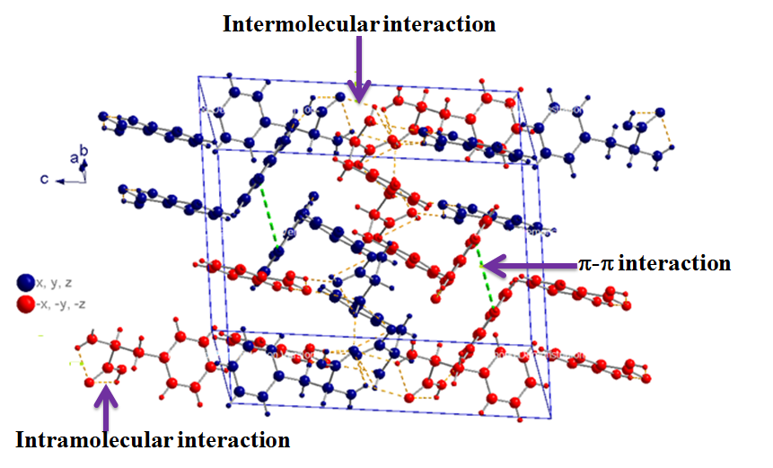 A single-crystal X-ray structural analysis shows that cocrystal crystalizes in the triclinic system with the space group P-1 as listed in table 3. The empirical formula of this cocrystal is C20H20N4O12 which consists of two salicylic acid and two phenylalanine formulated as (H2Sal•Phe)2. This is to confirm that the asymmetric unit contains 2 molecules per unit cell.