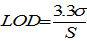 Where σ is the standard deviation of intercepts and S is the slope of the calibration curve [23].