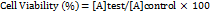 Where, [A]test is the absorbance of the test sample and [A]control is the absorbance of control samples.