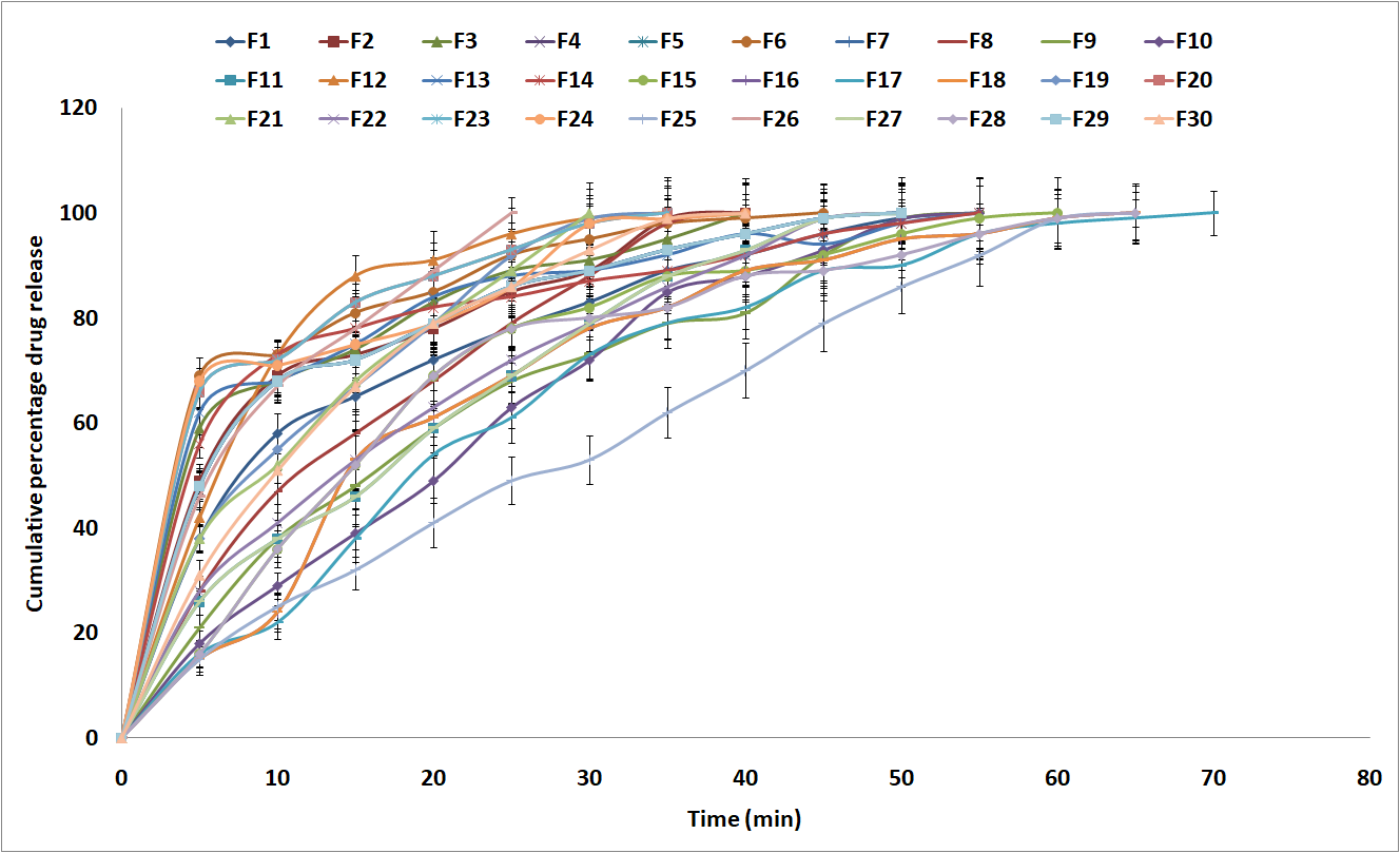 In DSC study, there is the minor shifting of melting endotherm of the drug; hence it can be said that, there was no incompatibility of drug with any of the excipients [25, 26] (fig. 10).