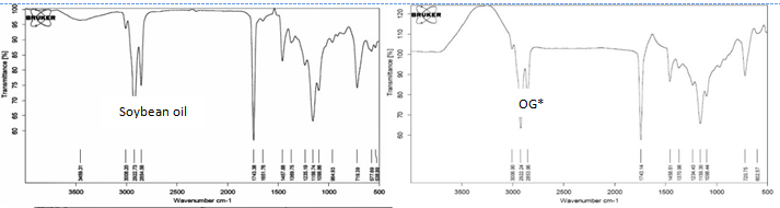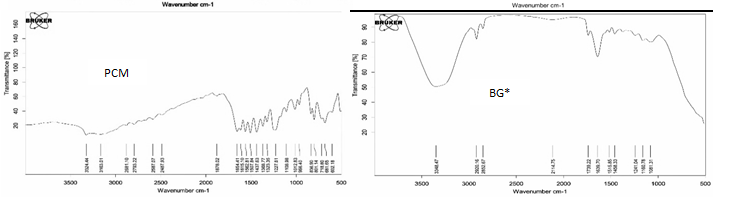 The FTIR spectra of blank organogel (OG*) and drug-loaded formulations (OG2 andBG4) are shown in fig. 1. Major peaks of individual components could be detected in the corresponding organogel and bigel. No new peaks could be seen.