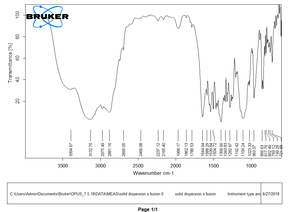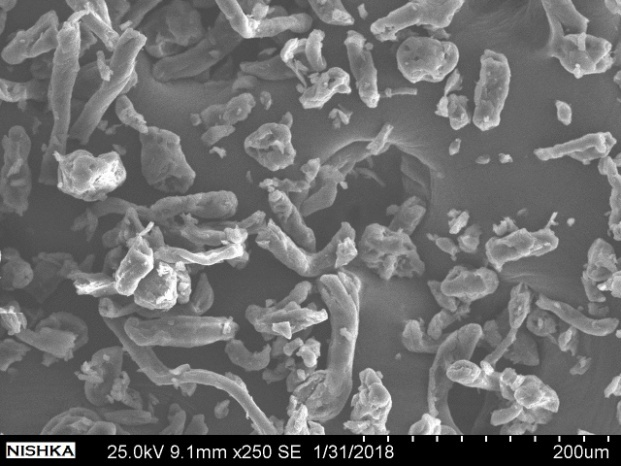 Based on the dissolution studies, the optimized formulations were selected, and FTIR and DSC studies were performed to observe the drug-polymer interactions. XRD studies were performed to detect the nature of formulations. SEM analysis was performed on Jack fruit seed powder, JFS2, Telmisartan pure drug, a blend of Telmisartan with JFS2 and a blend of Telmisartan with CCS to know surface characteristics.