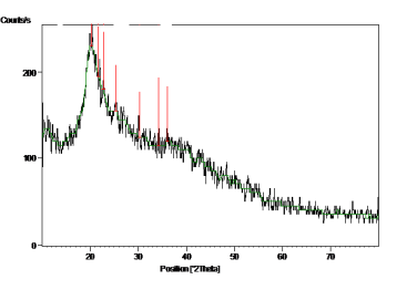XRD studies were carried out for pure drug of Telmisartan, JFS2, CCS, fast dissolving tablets of Telmisartan F5 and F11. The X-ray diffractogram of Telmisartan showed sharp and intense peaks at diffraction angles (2θ) of 19.957 ° and 21.240 °indicating a typical crystalline pattern. Whereas JFS2 showed intense peaks at diffraction angles (2θ) of 18.548 °, 24.142 °and 28.327 ° indicating crystalline nature. CCS showed sharp and intense peaks at diffraction angles (2θ) of 21.770 °, 22.741 °, 25.292 ° and 30.210 ° indicating crystalline nature. Formulation, F5 which is a FDT of Telmisartan and JFS2 showed sharp and intense peaks at diffraction angles (2θ) of 19.542 ° and 24.530 ° indicating the disappearance of some of the crystalline peaks of drug and JFS2 which suggest the formation of a new solid phase. Formulation, F11 which is a FDT of Telmisartan and CCS showed sharp and intense peaks at diffraction angles (2θ) of 21.758 °, 22.104 ° and 25.017 ° indicating disappearance of most of the crystalline peaks of drug and CCS which suggest the formation of a new solid phase with lower degree of crystallinity due to complexation. The detailed diffractograms were shown in fig. 6.