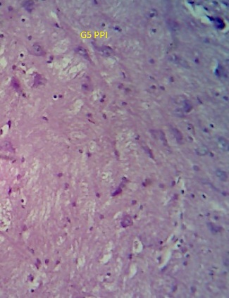 Histopathological studies indicated an insignificant change in tissues of brain and liver after 24 h and 15 d which proved the safety and biocompatibility of PEGylated G4 and G5 PPI dendrimeric carrier for these organs. Tissues of brain and liver sections of animals administered of high dose (250 mg/kg) of PEGylated G4 and G5 PPI dendrimers, displayed no signs of damage of tissues as in fig. 9, indicating that both generations of PEGylated PPI dendrimers are perfectly biocompatible with the investigated doses.