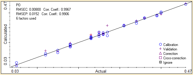 For preparing validation samples, a series of different samples was preparing in the concentration ranges covered by calibration samples. All samples were analyzed using FTIR spectrophotometer.