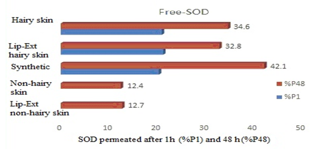 -Non-hairy skin: The permeability of SOD through the synthetic membrane was more than non-hairy guinea pig skin when SOD solution and both niosomal formulations were applied.