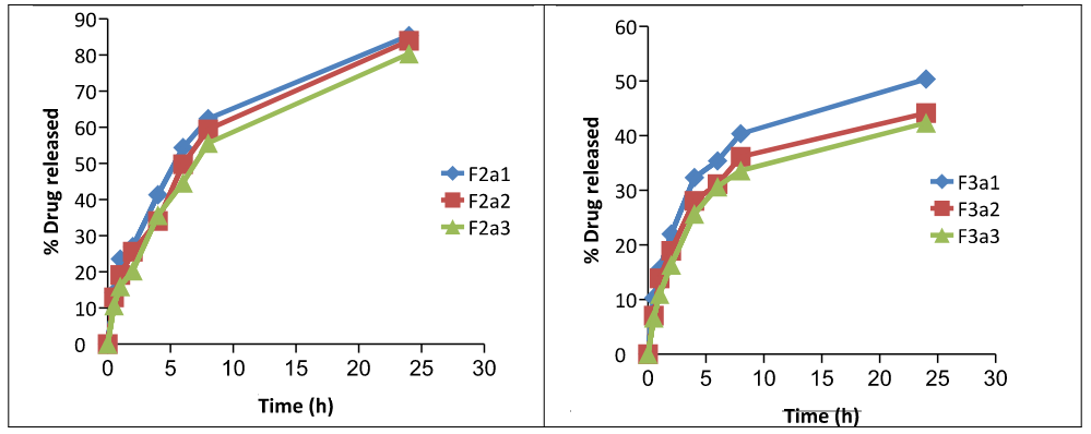 A Weighted amount of Carbopol 934 (1%, 2%, 3% w/w) was dispersed in 100 ml distilled water and stirred magnetically at a high speed. Stirring was continued until a thin dispersion, without lumps, was obtained, then the stirring speed was reduced to allow foam to break and to maintain a good liquid turnover while adding the 0.01% w/w of Triethanolamine required forming the gel [23].