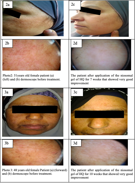 Conclusion: The incorporation of hydroquinone in niosomal gel improves its therapeutic effect regarding clinical effect, duration of treatment, side effects, recurrence and patient compliance.