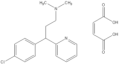 Chlorpheniramine maleate [fig. 2] is chemically but-2-enedioic acid; 3-(4-chlorophenyl)-N, N-dimethyl-3-pyridine-2-ylpropan-1-amine is a histamine H1-receptor antagonist used in allergic reactions, hay fever, rhinitis, urticaria and asthma.