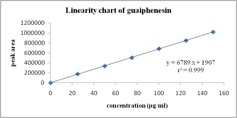 From the results of precision studies which were tabulated in table 3, the RSD values for peak areas were found to be less than 2 %. This surely assures that the developed method was precise and repeatable.