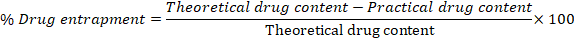 The entrapment efficiency of prepared NLCs was determined according to Gupta et al., (2007) [14]. The lyophilized formulation equivalent to 10 mg of drug was taken and dissolved in 50 ml of a beaker containing 10 ml of ethanol. The solution was then centrifuged at 10000 rpm for 10 min. The 1.0 ml of the supernatant solution was withdrawal with the help of micropipette and transfer into a 10 ml of volumetric flask. The volume was made upto 10 ml with ethanol and analyze spectroscopically for drug content using Simadzu 1700 UV-spectrophotometer and it was calculated according to the formula given below.