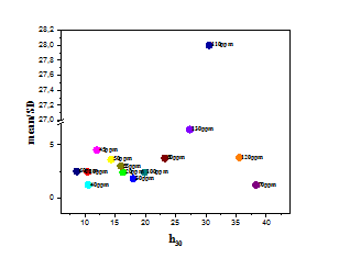 The dependencies of the analytical signal and the standard deviation of the results on the D/H ratio in the studied water samples were investigated. The results of the correlation method are presented in the form of two-dimensional (2D) diagrams of multi-descriptor analysis [43] (similar to the “fingerprint” in molecular biology) and make it possible to visually illustrate the topology of 2D laser scattering for a series of images of deuterium depleted water obtained by laboratory dilution and in industrial manner (fig. 5).