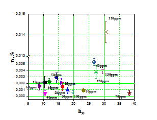 The grain-size distribution curves show the area of differentiation of all laboratory samples of deuterium depleted water at water GHC diameter d = 30 µm. This difference allowed us to determine the characteristic areas occupied by deuterium depleted water samples when measuring calibration diagrams (fig. 3).
