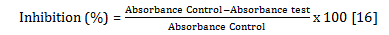 Table 2: Absorbance, % inhibition and IC 50 of quercetin (The values are means±SD of three replicates)