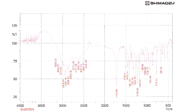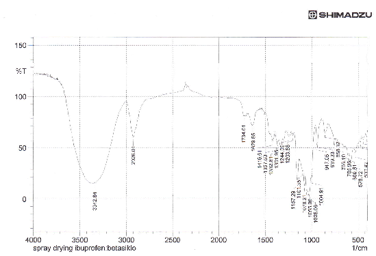 Based on the fig. 1. IB appeared at a peak around 1720.50 cm-1(carbonyl stretching of iso propionic acid group) and 2954.95 cm-1and 1066.64 cm-1 regions. While on spectra of inclusion complex results showed no visible peaks like the pure ibuprofen, an only peak which was similar to that β-CD, peak which was widened peak at 3342.64 and 2926.01 cm-1 regions. This proved that IB had been incorporated into the β-CD cavity.