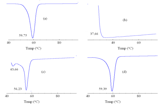 Fig. 2: DSC thermograms of PEG (a), ɛCL (b), PCEC 2 (c) and PCEC 5 (d)