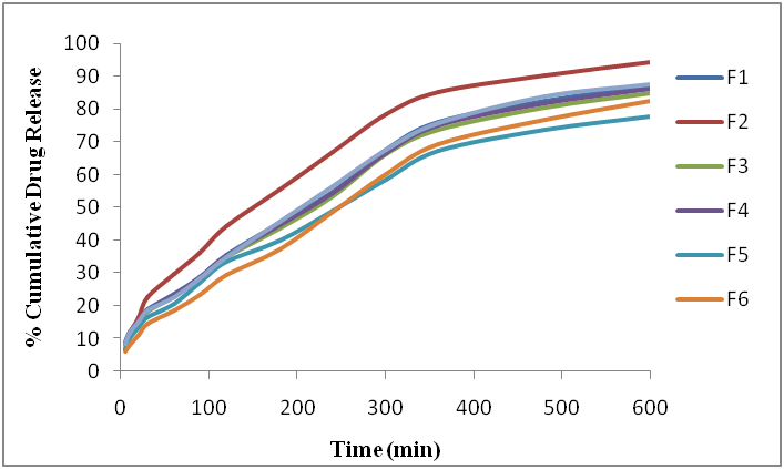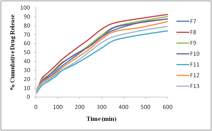 Fig. 5: In vitro dissolution profile of formulations F1-F13