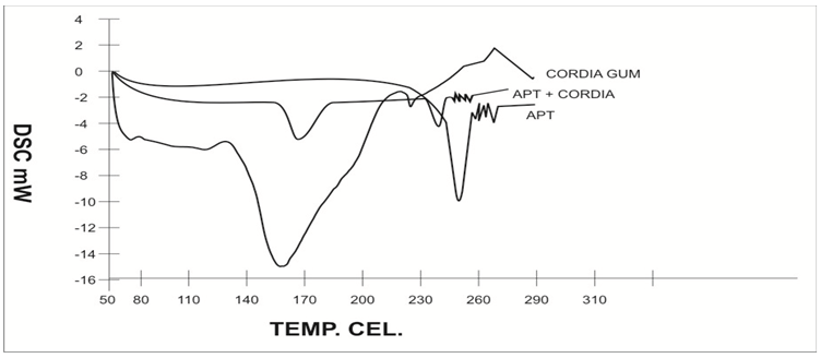 Fig. 2: Comparison of DSC of cordia dichotoma, aprepitant (APT) and mixture of both