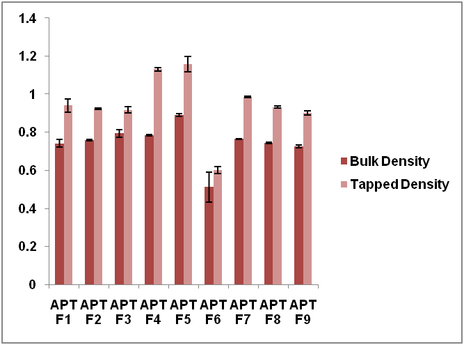 Fig. 3: Graphical presentation of bulk density and tapped density (mean±SD, n = 3)