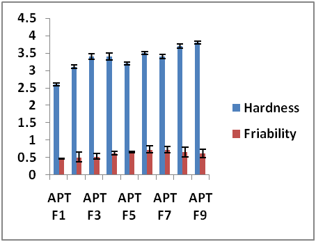 Fig. 6: Graphical presentation of hardness and friability of all batches (mean±SD, n = 3)