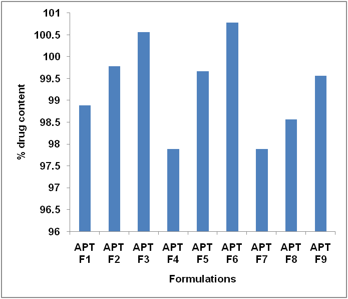 Fig. 7: Drug content of all batches (APT F1-APT F9)