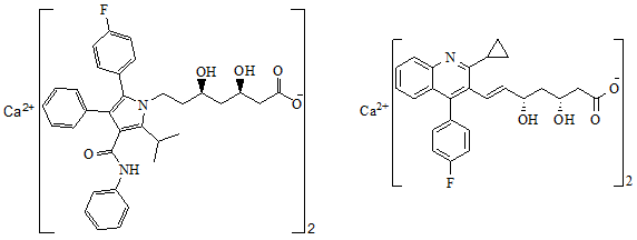 Fig. 1: Chemical structures of atorvastatin calcium (ATC) and pitavastatin calcium (PTC)