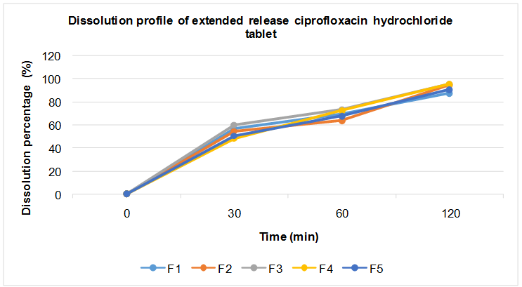 Fig. 2: Dissolution profile of ciprofloxacin hydrochloride extended-release tablets