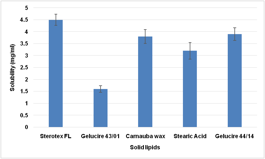 Fig. 2: The solubility of ZRS in solid lipids; mean±SD, n=3