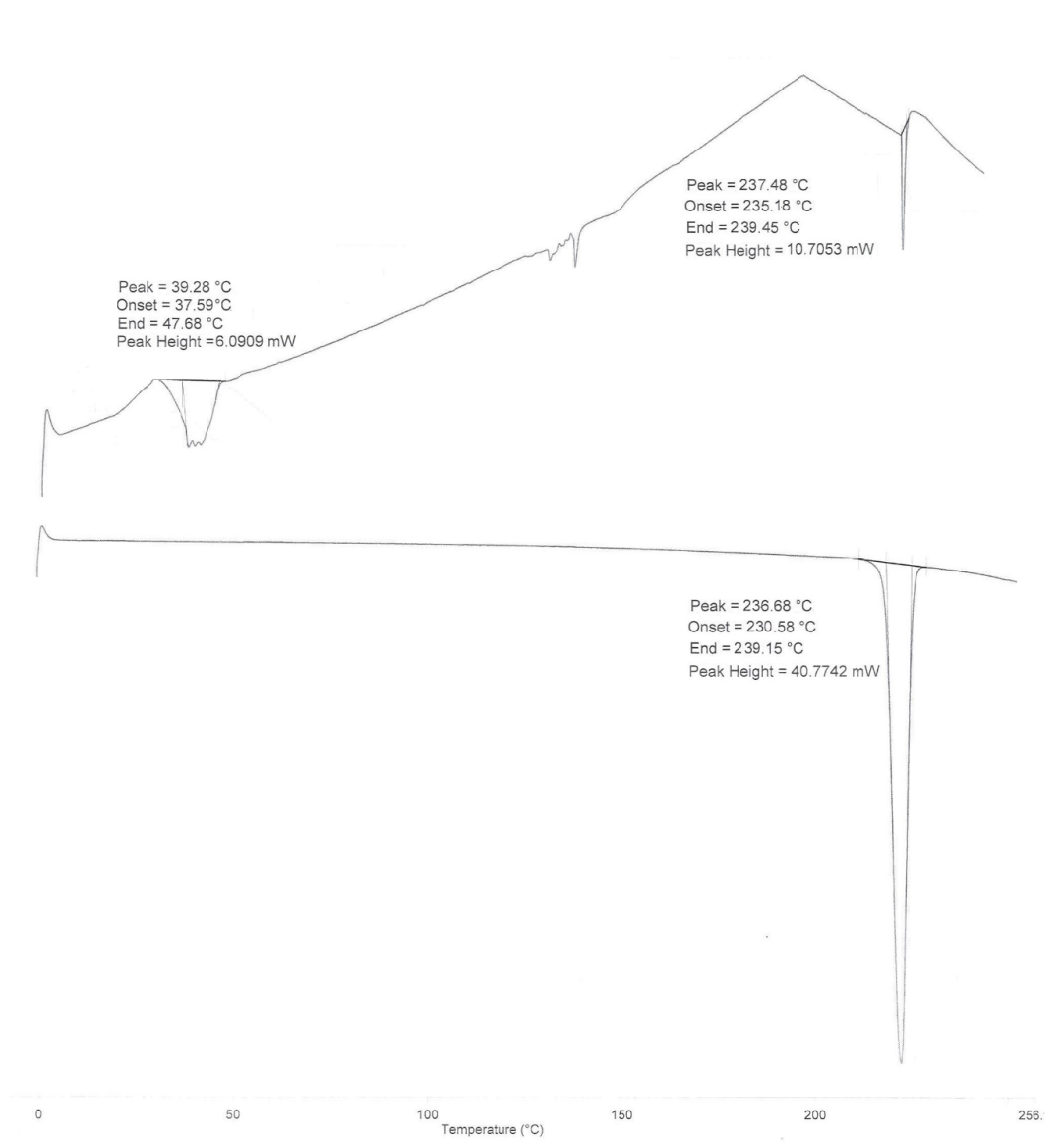 Thermograms obtained from DSC analysis for both pure ZRS and ZRS physical mixture were depicted in fig. 3 respectively. Wherein, pure ZRS thermogram had shown a sharp endotherm peak at 236.68 °C, which is in agreement with ZRS’s melting range. While, the physical mixture displayed two peaks, first at 39.28 °C (corresponding to the oil phase), where the drug may be molecularly dispersed in corresponding lipids. While, the second peak at 237.48 °C may be attributed to pure ZRS, indicating the absence of undesirable drug-lipid interactions [27].