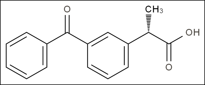 According to the biopharmaceutical classification system (BCS), ketoprofen (a NSAID) is an example of Class II drugs which have good solubility but poor permeability [12]. Hence, ketoprofen was selected to be formulated as a topical hydrogel where a natural penetration enhancer was used. ketoprofen was an appropriate candidate for transdermal delivery owing to its adequate aqueous solubility when compared to other NSAIDs [3, 13]. The chemical structure of ketoprofen is given in fig. 1 below.