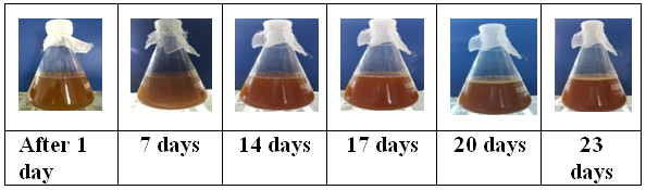 The green tea leaves (20 g) were added to 1000 ml of boiled water and allowed to infuse for 10-15 min. The infusion was filtered to remove the tea leaves. Sugar (100 g) was dissolved in hot aqueous green tea extract, and preparation was left to cool to room temperature. The aqueous green tea extract was then poured into sterile glass bottles. The bottles were then covered with sterile muslin cloths and incubated at 30 °C. The fermentation could be carried out to produce the 3DNC [10, 11]. The trapping process of Acetobacter bacteria from fermented aqueous green tea extract was described in fig. 1 [11].