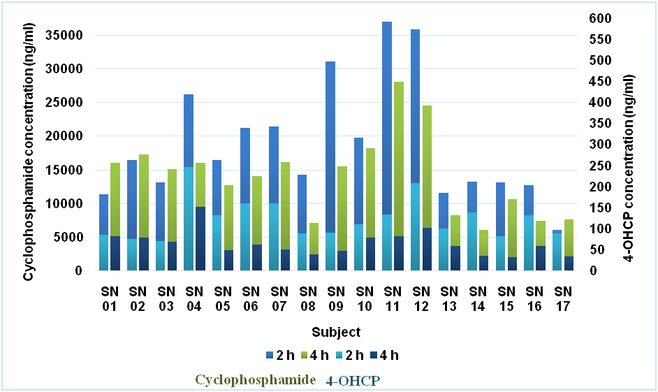 Fig. 3: Bar chart of cyclophosphamide and 4-OHC plevel