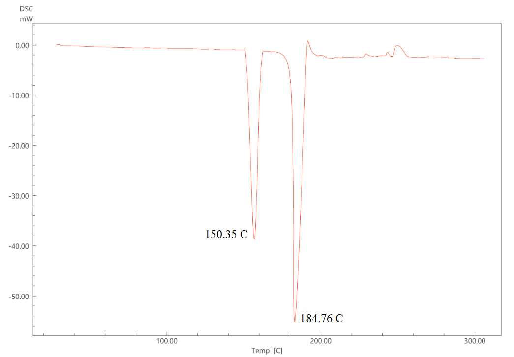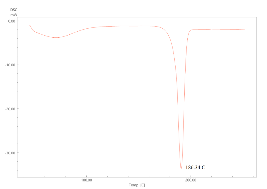 DSC analysis was used to compare the melting enthalpy, glass transition temperature, and interactions of the medication Ambrisentan (pure drug) with Excipients. The investigation was conducted with DSC Q1000 TA equipment. Approximately 2-5 mg of sample was put in standard aluminum pans and scanned from 5 °C to above its melting point at a rate of 10 °C/min with dry nitrogen (flow rate 50 ml/min) as the effluent gas [26].