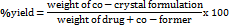 The % yield of the co-crystal formulations was determined as follows.
