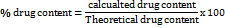 Drug content and solubility