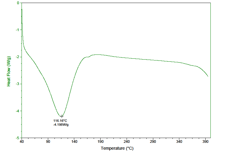 Fig. 7: DSC thermogram for PK-30, DSC thermo grams of the co-formers revealed typical polymeric behaviour. (fig. 6 and 7)