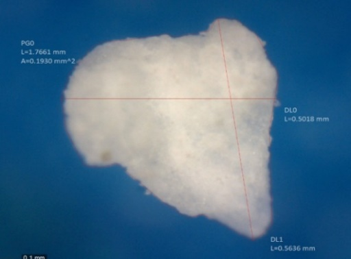 Morphologies of ibuprofen lysine drug substance, the co-formers, and the co-crystal particles were investigated. Ibuprofen lysine crystals appeared as irregular crystals agglomerated in bundles (fig. 15), whereas the co-formers appeared as transparent, almost rectangular particles. (fig. 16 and 17) Microscopic analysis of solids A5 and B8 were consistent with DSC and FTIR study. The characteristic appearance of ibuprofen lysine and Polyvinylpyrrolidone disappeared in B8 solid. It appeared as irregular solid aggregates making it impossible to differentiate between co-crystal components. (fig. 18) The solid A5 was rectangular, transparent, and opaque (fig. 19).