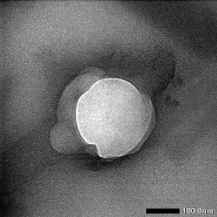 The myricetin nanophytosome sample used for the TEM test is the myricetin formula 6 nanophytosome sample with the Myricetin: Phosphatidylcholine: Cholesterol (1: 1: 0.4) test used to see the morphology. The use of 1-mole phosphatidylcholine in the formula can prevent agglomeration so that the particles do not grow bigger. Observations with TEM nanophytosome formula 6 show irregularly shaped round nanoparticles vesicles. The micrograph of the TEM results can be seen in fig. 2. The polar portion of the vesicles is shown in black, while the transparent or colorless portion indicates the presence of a non-polar compound. The method of manufacture influences the shape of vesicles, in some previous studies, the shape of particles produced was spherical and uniform, but in this study, the shape of the resulting vesicles was irregularly rounded. This needs to be developed in further research to find other manufacturing methods to produce better vesicle shapes.