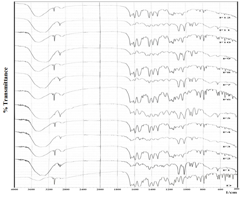 The infrared spectra were done for the raw drug, excipients, and the formulae which were recorded over a wave number range of 4000 cm-¹ to 400 cm-¹ (IR Affinity-1, Shimadzu, Kyoto, Japan) [16].