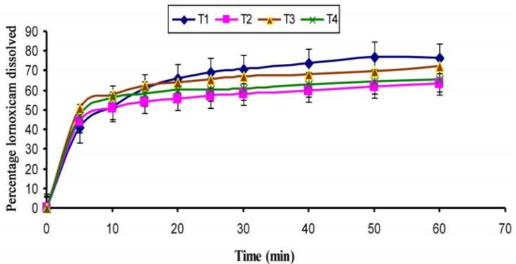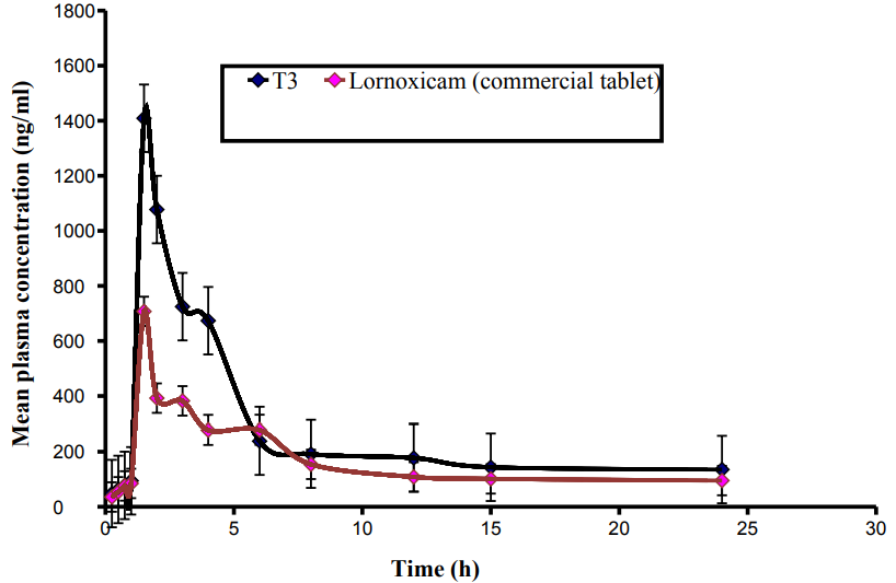 Conclusion: Taken together, the obtained results confirmed successfully the potential of the promising formula (T3), over the conventional tablets of lornoxicam.