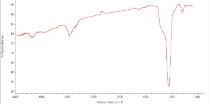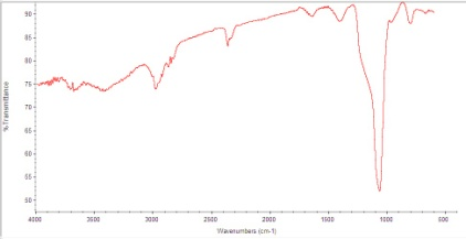 The mesoporous materials formed were characterized by scanning electron microscope (SEM), transmission electron microscope (TEM), and Fourier transforms infrared (FTIR). Particle morphology was analyzed by SEM using JEOL JSM at a voltage of 15 kV. The sample powder was coated with gold to form a conductive layer on a carbon stub to evaluate the surface properties. TEM image was recorded with HITACHI HT7700 at an accelerating voltage of 120 kV to assess the size and shape of the pores of mesoporous. FTIR spectra were taken in Nicolet iS5 Thermo Fisher Spectrometer using the resolution of 4 cm in 4000–400 cm range.