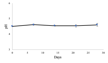 Fig. 1 indicates that the pH of serum gel containing AK leaf extract did not change significantly after 28 d storage and remained within the acceptable pH for topical preparations, which is between 4.5–6.5 [4].