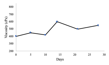 Fig. 2: Viscosity of serum gel containing AK leaf extract (The data were calculated as mean±SD; n=3)