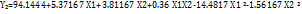 The final equation in terms of coded factors for mean globule size (Y1) and % drug release (Y2):