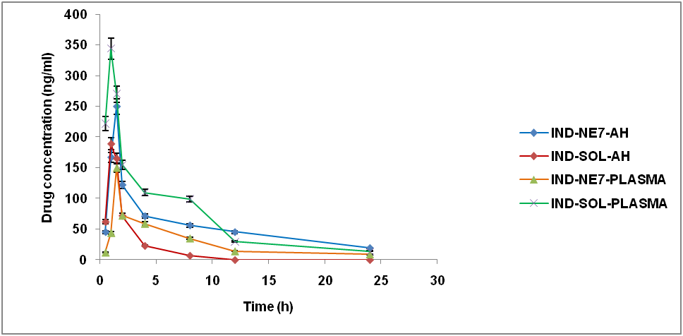 Fig. 9: In vivo drug concentration profile, *error bars represent standard deviations of three replicates