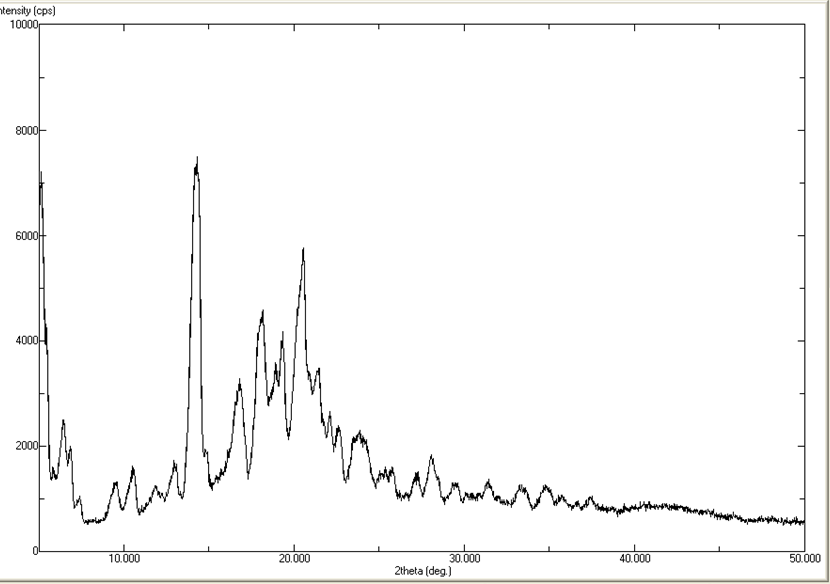 The PXRD patterns of the pure nateglinide and the optimized NTG-ternary dispersion were obtained using an X-ray diffractometer, Miniflex II (Regaku, USA). The samples were scanned in the range of 5 ° to 50 ° (diffraction angle 2θ), Cu K α line as the source of radiation with nickel filter, at the 40-kV voltage and 25-mA current.