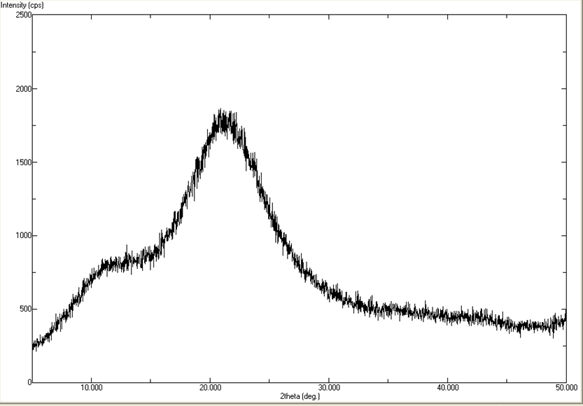 The PXRD diffractograms of NTG and the optimized NTG-ternary dispersion are presented in fig. 3. As can be seen from the PXRD spectra of pure NTG, showed sharp characteristic diffraction peaks at 2θ diffraction angles of 5, 10.5, 12, 15 and 19 confirming the crystalline nature of the pure drug. In the PXRD spectra of optimized ternary solid dispersions, no characteristic peaks were observed. Broad hallows were observed, indicating the amorphous nature of NTG in ternary dispersions.