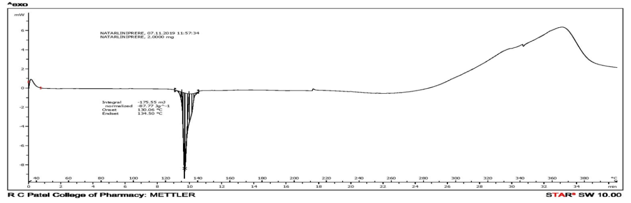 Fig. 4: DSC thermogram of pure NTG and optimized ternary dispersion
